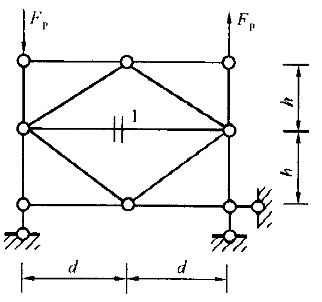 | 正确答案:D 解题思路:该题需要利用几何组成规则进行分析,先去掉两个二元体3、7,145682组成刚片,该刚片仅需3个链杆即可构成无多余约束几何不变体系,因此,原体系有一个多余联系,所确答案选择为D。 |