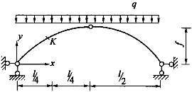 5.已知图示三铰拱的轴线方程为y=(4f/l )x(l-x),则x=l/4的截面K的弯矩为:![]() |