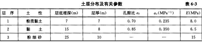 1.某城市当前地下水位在地表以下5m,由于抽取地下水,地下水位以2m/a的速率下降,地层的主要资料及有关参数的平均值如表6-3所示,第3层以下为不透水层,则10年后该城市的地面沉降量最接近( )。![]() |