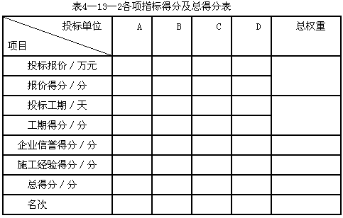 | 1.某综合楼工程项目的施工,经当地主管部门批准后,由建设单位自行组织公开招标。 招标工作主要内容确定为:①成立招标工作小组;②发放招标文件;③发布招标公告;④编制标底;⑤编制招标文件;⑥投标单位资格审查;⑦组织现场踏勘和招标答疑;⑧开标;⑨确定中标单位;⑩接收投标文件; 评标; 签订承发包合同; 发出中标通知书。现有A、B、C、D四家施工企业,经资格审查合格,参加该工程的投标。与评标指标有关的数据如表4-13-1所示。 ![]() 经招标工作小组确定的评标指标及评分方法为: (1)投标报价以标底价(3600万元)的±4%以内为有效标。评分方法是:报价以标底价减去其4%为100分,在标底价减去其4%的基础上,每上升1%扣3分,不足1%的按1%计算; (2)定额工期为500天。评分方法是:工期提前60天为100分,在此基础上每拖后5天扣3分; (3)企业信誉和施工经验均已在资格审查时评定。 企业信誉得分:B单位为100分,A、C、D单位均为96分;施工经验得分:A、C单位为100分,B、D单位为96分。 (4)上述四项评标指标的总权重分别为:投标报价40%;投标工期、企业信誉和施工经验均为20%。 【问题】 1.如果将上述招标工作内容的顺序作为招标工作先后顺序是否妥当?如果不妥,请给出合理的顺序。 2.试在表4-13-2中填制每个投标单位各项指标得分及总得分,其中报价得分要求列出计算式并根据总得分列出名次,确定中标单位。 ![]() |