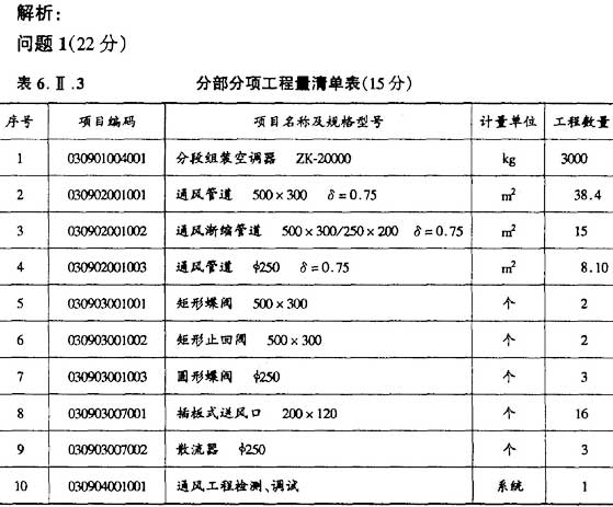 1.根据《建设工程工程量清单计价规范》的规定,编列出该工程的分部分项工程单项目,将相关内容填入答题纸表6.Ⅱ.3 中,并在答题纸表6.Ⅱ.3的下面列式计算通风管道的工程量。