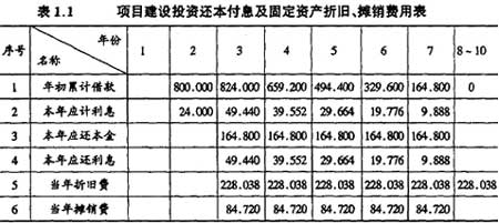 表1.1 项目建设投资还本付息及固定资产折旧、摊销费用表