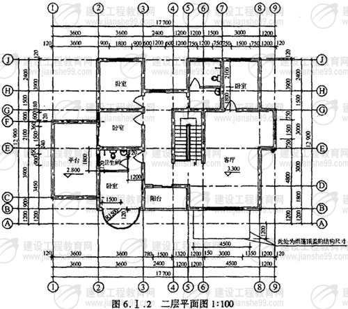 一层:(1.5+3.2-1.6一o.4)+(1+3.2一1.3)+(1+3.2一1.3)+(1+0.1+1.3)+l(1.1+3.2-1.3)+(1.6+3.2-1.3)+2.5=19.9(m)