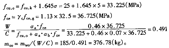 正确答案:B 解题思路:第一步:计算混凝土试配强度fcu,o;第二步:计算水灰比W/C;第三步:计算单位水泥用量,mco=mwo/(W/C)。