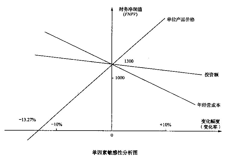 | 正确答案: 问题1 ![]() 注:表1.2中数据来源:项目建设期贷款利息=1/2×500×6%=15(万元) 第3年初的累计借款为:500+15=515(万元) 第3年应计利息为:515×6%=30.90(万元) 第4年初的累计借款为:515+30.90=545.90(万元) 第4至第7年的应还本金为:545.90÷4=136.475(万元) 将以上计算结果填入表1.2再计算第4至第7年的应计利息和年初累计借款。 ![]() 问题2 第3年的经营成本=900-100-30.9-8=761.1(万元) 第4年的经营成本=1500-100-32.75-24=1343.25(万元) 第10年的经营成本=1500-100-24=1376(万元) 问题3 投资额:[(1190-1300)/1300]/10%=-0.85 单位产品价格:[(320-1300)/1300]/(-10%)=7.54 年经营成本:[(550-1300)/1300]/10%=-5.77 敏感性排序:单位产品价格、年经营成本、投资额。 问题4 单位产品价格变动的临界点:-1300×10%/(1300-320)=-13.27% 单因素敏感性分析图如下: ![]() |