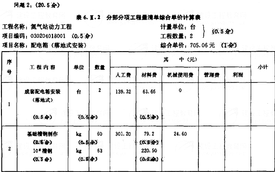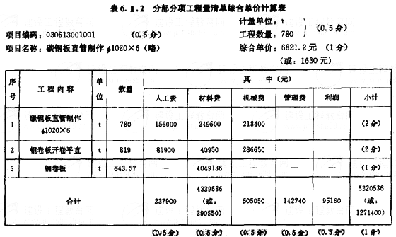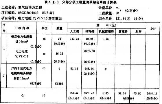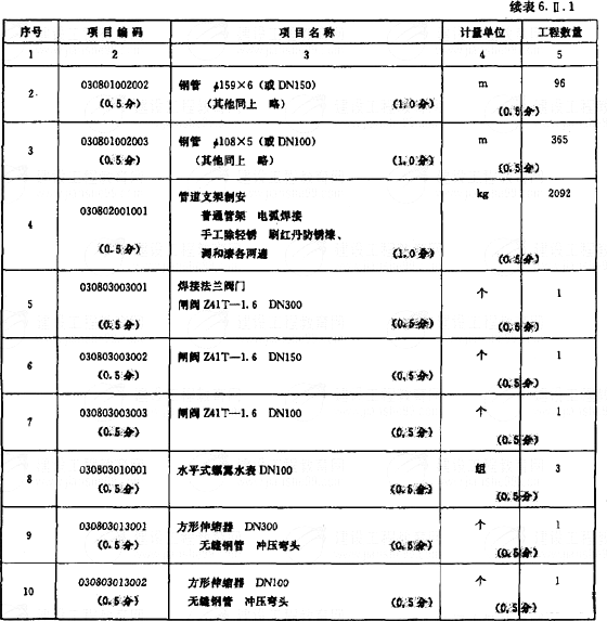 | 1.(40分) 本试题分三个专业(Ⅰ土建工程、Ⅱ工业蕾道安装工程、Ⅲ电气安装工程),请任选其中一题作答。若选作多题,按所答的第一题(卷面顺序)计分。 Ⅰ.土建工程 某小高层住宅楼建筑部分设计如图6.I所示,共12层。每层层高均为3米,电梯机房与楼梯间部分凸出屋面。墙体除注明者外均为200mm厚加气混凝土墙.轴线位于墙中。外墙采用50mm厚聚苯板保温。楼面做法为20mm厚水泥砂浆抹面压光。楼层钢筋混凝土板厚100mm,内墙做法为20mm厚混合砂浆抹面压光。为简化计算首层建筑面积按标准层建筑面积计算.阳台为全封闭阳台,⑤和⑦轴上混凝土柱超过墙体宽度部分建筑面积忽略不计,门窗洞口尺寸见表6.I.1,工程做法见表6.I.2. ![]() ![]() 问题: 1.依据《建筑工程建筑面积计算规范》(GB/T 50353-2005)的规定,计算小高层住宅楼的建筑面积。 将计算过程、计量单位及计算结果填入答题纸表6.I.1“建筑面积计算”。 2.依据《建筑工程工程量清单计价规范》附录B的工程量计算规则,计算小高层住宅楼二层卧室1、卧室2、主卫的楼面工程量以及墙面工程量.将计算过程、计量单位及计算结果按要求填入答题纸表6.I.2“分部分硬工程量计算”。 3.结合图纸及表6.I.2“工程做法”进行分部分项工程量清单的项目特征描述,将描述和分项计量单位填入答题纸表6.I.3“分部分项工程量清单”。 (计算结果均保留两位小数。) ![]() ![]() Ⅱ.管道安装工程 1.某住宅区室外热水管网布置如图6.Ⅱ所示。 管网部分分部分项工程量清单项目的统一编码见下表: ![]() 2.有一输气管线工程需用Φ11020×6的碳钢板卷管直管,按管道安装设计施工图示直管段净长度(不含阀门、管件等)共5000m,采用埋弧自动焊接。所用钢材均由业主供应标准成卷钢材。某承包商承担了该项板卷管直管的制作工程,板卷管直管制作的工料机单价和相关要求说明如下: ![]() 注:1.Φ1020×6的碳钢板卷管直管重量按150kg/m计; 2.按照以下规定:碳钢板卷管安装的损耗率为4%。每制作1t的板卷管直管工程量耗用钢板材料1.05t;钢卷板开卷与平直的施工损耗率为3%; 3.管理费、利润分别按人工费的60%、40%计。 问题: 1.将各项管道和管道支架制作安装清单项目工程量的计算过程,分别写在答题纸相应位置。根据《建设工程工程量清单计价规范》的有关规定,编制如图6.Ⅱ所示管网系统的分部分项工程量清单项目,将结果填入答题纸表6.Ⅱ.1“分部分项工程量清单表”第2、3、4、5栏内。 2.在答题纸相应位置写出答题纸中要求的有关项目的计算过程: (1)Φ1020×6碳钢板直管制作工程量; (2)制作碳钢板直管前,需对成卷碳钢板进行开卷与平直的工程量; (3)发包人所供应标准成卷钢材的数量及其费用; (4)承包人应该向发包方计取的该项钢板卷管制作分部分项工程量清单费用数额。依据《建设工程工程量清单计价规范》《全国统一安装工程预算定额》的有关的规定,计算出Φ1020×6碳钢板直管制作(清单项目的统一编码为030613001)的分部分项工程量清单综合单价,将相关数据填入答题纸表 6.Ⅱ.2“分部分项工程量清单综合单价计算表”中。 (以上计算结果保留两位小数。) ![]() 说明 1.本图所示为某住宅小区室外热水管网平面布置图.该管道系统工作压力为1.0MPa.热水温度为95℃.图中平面尺寸均以相对坐标标注.单位以m计,详图尺寸以mm计。 2.管道敷设管沟(高600mm×宽800mm)内,管道均采用20#碳钢无缝钢管,弯头采用成品冲压弯头、异径管,三通现场挖眼连接,管道系统全部采用手工电弧焊接。 3.闸阀型号为Z41H-1.6,止回阀型号为H41H-1.6.水表采用水平螺翼式法兰连接,管网所用法兰均采用碳钢平焊法兰连接. 4.管道支架为型钢横担.管座采用碳钢板现场制作,Φ325×8管道每7m设一处,每处重量为16kg;Φ159×6管道每6m设一处,每处重量为15kg;Φ108×5管道每5m设一处。每处重量为12kg.其中施工损耗率为6%. 5.管道安装完毕用水进行水压试验和消毒冲洗,之后管道外壁进行除锈,刷红丹防锈漆二遍。外包岩棉管壳(厚度为60mm)作绝热层。外缠铝箔作保护层。 6.管道支架进行除锈后,均刷红丹防锈漆、调和漆各二遍。 Ⅲ.电气安装工程 某氮气站动力安装工程如图6.Ⅲ所示: 1.PD1、PD2均为定型动力配电箱,落地式安装,基础型钢用10#槽钢制作.其重量为10kg/m. 2.PD1至PD2电缆沿桥架敷设-其余电缆均穿钢管敷设.埋地钢管标准高为-0.2m.埋地钢管至动力配电箱出口处高出地坪+0.1m. 3.4台设备基础标高均为+0.3m.至设备电机处的配管管口高出基础面0.2m,均连接1根长0.8m同管径的金属软管。 4.计算电缆长度时不计算电缆敷设弛度、波形弯度和交叉的附加长度,连接电机处,出管口后电缆的预留长度为1m,电缆头为户内干包式,其附加长度不计。 5.电缆桥架(200×100)的水平长度为22m. 6.表中数据为计算该动力安装工程的相关费用: ![]() 管理费和利润分别按人工费的55%和45%计。 分部分项工程量清单的统一编码为: ![]() 问题: 1.根据图示内容和《建设工程工程量清单计价规范》的规定,计算相关工程量和编制分部分项工程量清单。将配管、电缆敷设和电缆桥架工程量的计算式填入答题纸上的相应位置,并填写答题纸表6.Ⅲ。1 “分部分项工程量清单”。 2.假设电力电统YJV4×16穿管敷设的清单工程量为30m.依据上述相关费用数据计算配电箱(落地式安装)和电力电缆YJV4×16穿管敷设二个项目的综合单价,并分别填入答题纸表6.Ⅲ