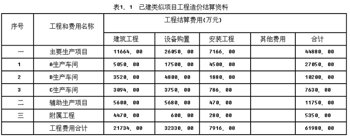 9.某企业拟兴建一项工业生产项目。同行业同规模的已建类似项目工程造价结算资料,见表1.1。