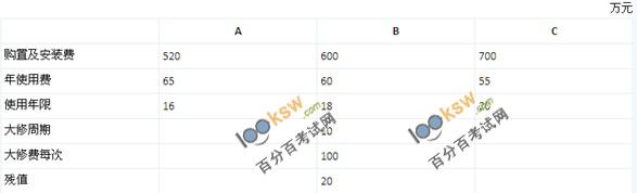 2、若只考虑购置及安装费、年使用费,计算B方案的年费用,已知方案A、C的年费用为123.88、125.88,按年费用选择方案。