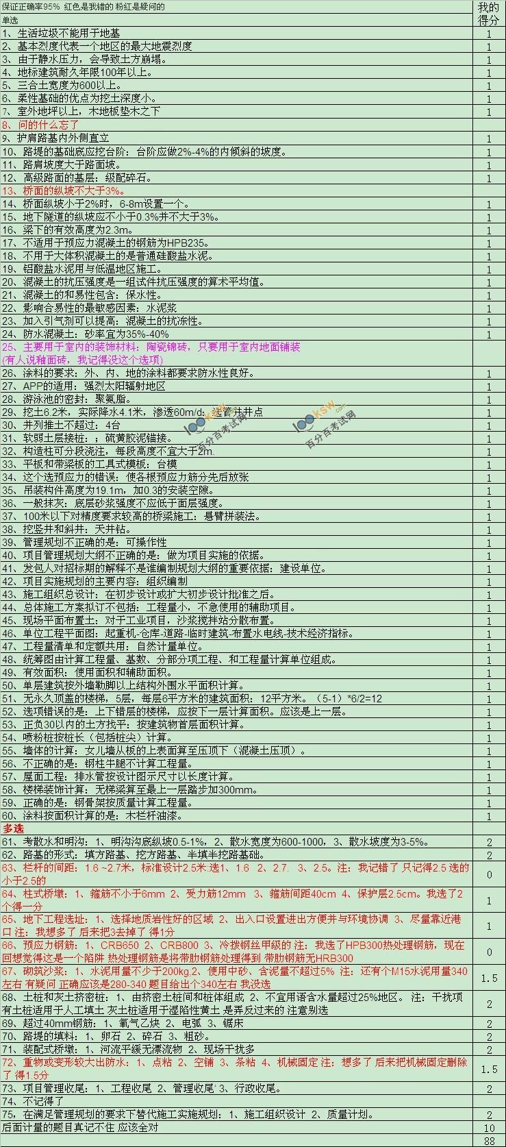 2012造价工程师技术与计量(土建)答案(推荐版)