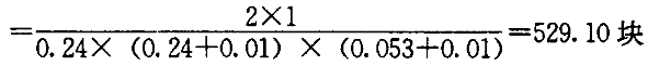 | 正确答案:D 解题思路:此题所需使用的公式在教材中并没有明示,需要考生对于工程技术知识把握较深。 1m 砖墙体中砖的净用量(块)![]() ![]() 则1m 砖墙体中砂浆的净用量=1-529.10×(0.24×0.115×0.053)=0.226(m )则1m 砖墙体中砂浆的消耗量=0.226×(1+1%)=0.228(m ) |