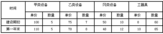 4.某工程在建设期初预计和建设期第一年末实际发生的设备、工器具购置情况如下表所示。与建设期初相比,第一年末的设备、工器具价格指数为( )。![]() |