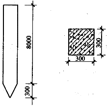 5.混凝土预制桩长度如图所示,断面尺寸为300mm×300mm,共16根,根据《建设工程工程量清单计价规范)GB50500-2008,计算混凝土桩的工程量清单为( )。![]() |