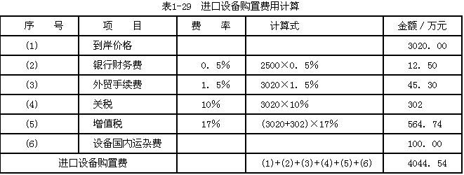 | 1.某地区2004年初拟建一工业项目,有关资料如下: 1.经估算国产设备购置费为2000万元(人民币)。进口设备FOB价为2500万元(人民币),到岸价(货价、海运费、运输保险费)为3020万元(人民币),进口设备国内运杂费为100万元。 2.本地区已建类似工程项目中建筑工程费用(土建、装饰)为设备投资的23%,2001年已建类似工程建筑工程造价资料及2004年初价格信息,如表1-23所示,建筑工程综合费率为24.74%。设备安装费用为设备投资的9%,其他费用为设备投资的8%,由于时间因素引起变化的综合调整系数分别为0.98和1.16。 3.基本预备费率按8%考虑。 ![]() 注:其他材料费是指除钢材、木材、水泥以外的各项材料费之和。 问题 1.按照表1-24的给定数据和要求,计算进口设备购置费用。 2.计算拟建项目设备投资费用。 3.试计算: (1)已建类似工程建筑工程直接工程费、建筑工程费用。 (2)已建类似工程建筑工程中的人工费、材料费、机械台班费分别占建筑工程费用的百分率(保留小数点后两位)。 (3)2004年拟建项目的建筑工程综合调整系数(保留小数点后两位)。 4.估算拟建项目工程建设静态投资。 ![]() |