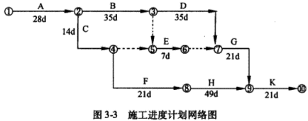 1.某建筑工程施工进度计划网络图如图3-3所示。![]() 施工中发生了以下事件: 事件1:A工作因设计变更停工10d。 事件2:B工作因施工质量问题返工,延长工期7d。 事件3:E工作因建设单位供料延期,推迟3d施工。在施工进展到第120d后,施工项目部对第110d前的部分工作进行了统计检查。统计数据见表3-28。 ![]() 问题 1.本工程计划总工期和实际总工期各为多少天? 2.施工总承包单位可否就事件1~3获得工期索赔?分别说明理由。 3.计算截止到第110d的合计BCWP值。 4.计算第110d的成本偏差CV值,并做CV值结论分析。 5.计算第110d的进度偏差SV值,并做SV值结论分析。 |