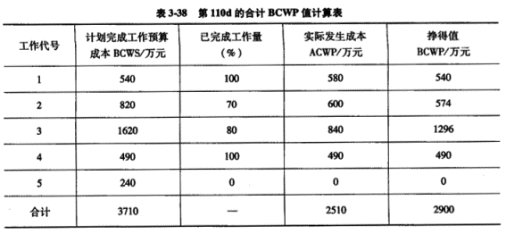 | 正确答案: 1.本工程计划总工期=(28+35+35+21+21)d=140d,实际总工期=(140+10+7)d=157d。 2.施工总承包单位可否就事件1~3获得工期索赔的判定及其理由: 事件1可以获得工期索赔。 理由:A工作是因设计变更而停工,应由建设单位承担责任,且A工作属于关键工作。 事件2不可以获得工期索赔。 理由:B工作是因施工质量问题返工,应由施工总承包单位承担责任。 事件3不可以获得工期索赔。 理由:E工作虽然是因建设单位供料延期而推迟施工,但E工作不是关键工作,且推迟3d未超过其总时差。 1. 计算截止到第110d的合计BCWP值,见表3-38: ![]() 截止到第110d的合计BCWP值为2900万元。 4.第110d的成本偏差CV=BCWP-ACWP=(2900-2510)万元=390万元。 CV值结论分析:由于成本偏差为正,说明成本节约390万元。 5.第110d的进度偏差SV=BCWP-BCWS=(2900-3710)万元=-810万元。 SV值结论分析:由于进度偏差为负,说明进度延误了810万元。 |
