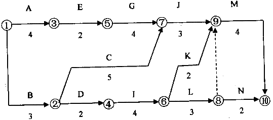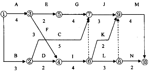 | 正确答案: 1.还应考虑:承担任务的充足条件和在该地区的经验。 2.(1)调整咨询服务计划:①在A工作后,在I工作前增加一项虚工作③-④;②在I工作后,在J工作前增加一项虚工作⑥-⑦,或在图2-2中表示。 (2)甲专业咨询工程师按A→I→J顺序进行实地考察,计算工期为17周,满足合同工期的要求。 (3)甲专业咨询工程师在现场考察的窝工时间为: A--I:ES -EF =5-4=1周![]() 图2-2 I--J:ES -EF =10-9=1周合计窝工时间为2周。 3.增加F工作后,双代号咨询服务网络进度计划如图2-3所示。 ![]() 图2-3 增加F工作后,计算工期为18周。 关键线路有:A-F-I-J-M和A-F-I-L-M 4.第15周末的进度偏差和费用偏差如下。 进度偏差:拟完工作计划费用一已完工作计划费用=13-10=3万元,工期拖延。 费用偏差:已完工作实际费用一已完工作计划费用=11-10=1万元,费用超支。 |