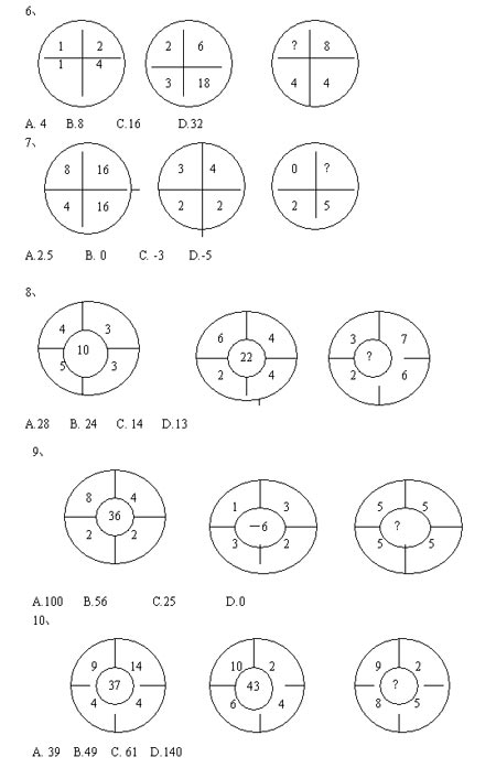6-10题是对加、减、乘、除四则运算的基本考察。其难度点在于无序性和随意性,数字本身的考察是一个难点。