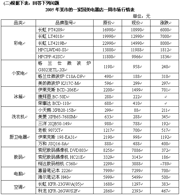 16. 该周国美电器中涨跌价最高的电器为( )。