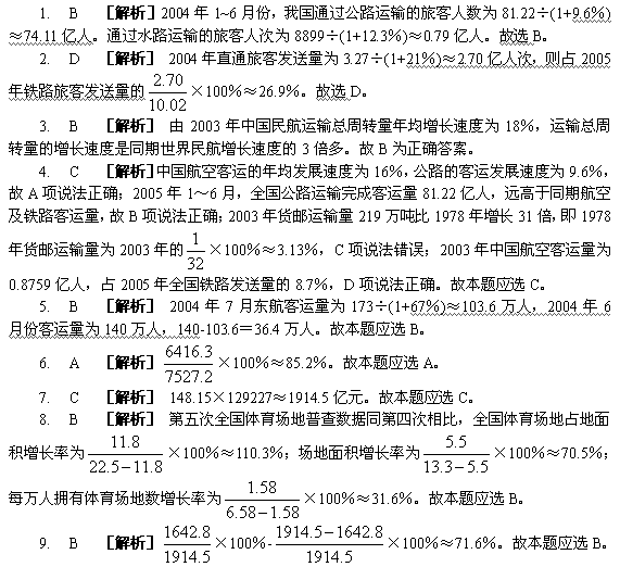 26. D [解析] 2005年1~8月份,全国房地产开发投资增幅为24.0%,2005年1~4月份则为27%。27-24=3。故选项D正确。