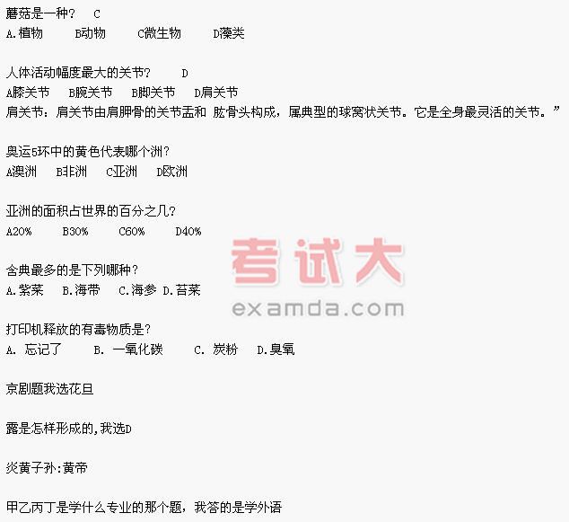 2006年6月广东公务员考试行政职业能力测验真题之常识
