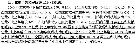 134.2003年国家财政科技拨款额约占全国总科技活动经费支出的(    )。