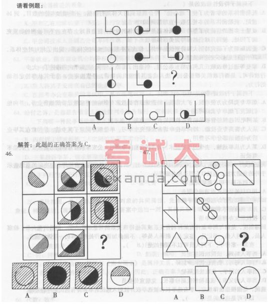 46.C 【解析】阴影部分叠加后会变成黑色。
