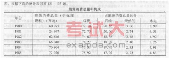 134.能源消费构成中,从1980年到1985年变化比例最大的是( )。