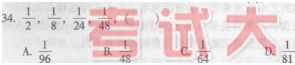34.B 【解析】该列数字规律为:第一项乘以1/4得到第二项;第二个数字乘以1/3得到第三项;第三项乘以1/2得到第四项;依此规律,第四项乘以1/1得到第五项;故答案为B。