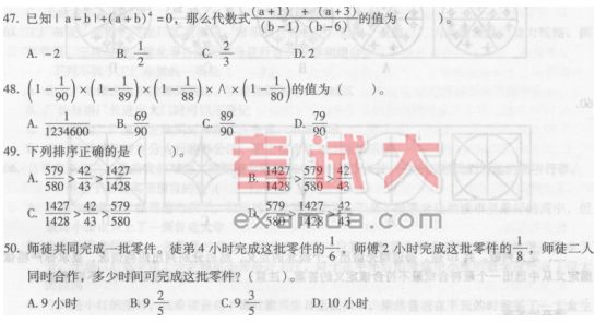 二、数学运算。共15题。在这部分试题中,每道试题呈现一道算术式,或是表述数字关系的一段文字,要求你迅速、准确地计算出答案。你可以在草稿纸上运算。遇到难题,可以跳过暂时不做,待你有时间再返回解决它。