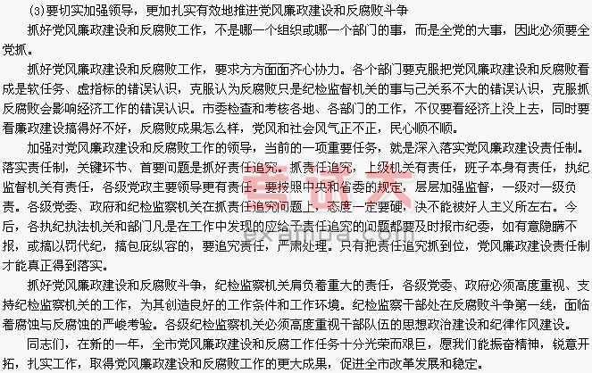 这次全市反腐败工作会议,是市委、市政府决定召开的一次重要会议。刚才,其他同志对今年全市党风廉政建设和反腐败工作做了具体部署和安排并提出了明确要求。这里,我再强调几个问题: