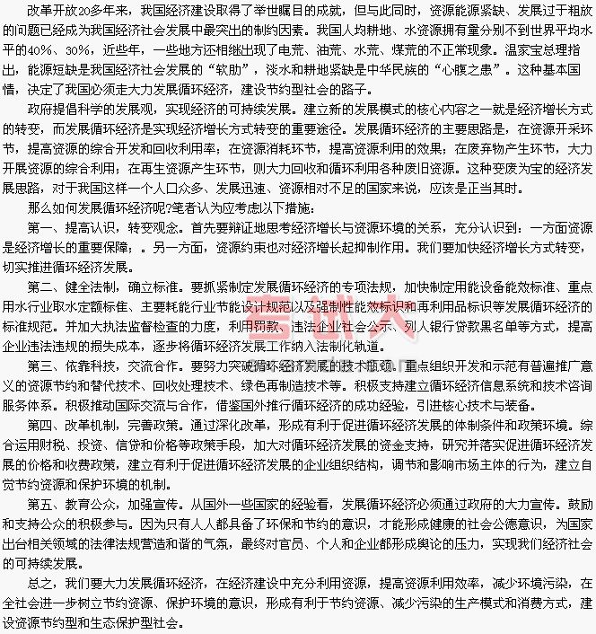 我国虽然地大物博,但是人均资源占有量不足。特别是我国经济的快速增长,是建立在高能耗、粗放型发展的基础之上,这导致近年来一些地区的水资源、煤电油等能源非常紧张。此外,全社会的节约意识不强,一些企业浪费现象很严重,人们的消费观念也出现了问题,超前消费和奢侈消费成为了社会时尚。好在政府及时提出了树立科学发展观、建设节约型社会的经济发展新思路,不但以身作则,还出台和完善了很多相关的技术标准与法律法规,并利用经济杠杆调节社会和个人对资源和能源的需求,参照一些外国相关的节约经验,我们的政策制定也越来越科学。