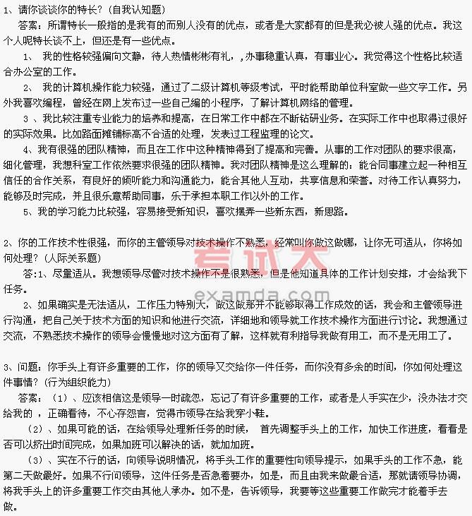 答案:1、出现这样的问题我感到很遗憾,这说明我的基本功还有欠缺,但我觉得在科技发展知识更新如此迅速的今天,一个人不可能能够解决所有的问题。