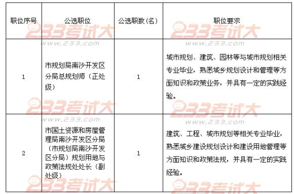 为进一步扩大用人视野,广泛吸引人才,更好地为促进南沙开发建设发展提供人才支持,根据《党政领导干部选拔任用工作条例》、《公开选拔党政领导干部工作暂行规定》等有关文件精神,经南沙开发区党工委会议研究,我部决定面向广州地区各党政群机关、事业单位公开选调市规划局南沙开发区分局总规划师(兼任市规划局南沙分局总规划师,下同)、市国土资源和房屋管理局南沙开发区分局(市规划局南沙开发区分局)规划用地与政策法规处处长各1名。