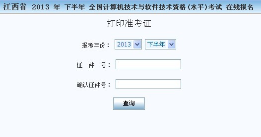 江西2013年下半年软考准考证打印入口