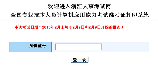 浙江2015年2月7日和11日职称计算机准考证打印入口已开通,