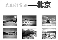 这种思路虽然比较简单,但操作起来很繁琐,而且完成后我们会发现,设计出来的幻灯片结构混乱,很容易出错,尤其是不易修改,如果要更换图片,就得重新进行“动作设置”。那么有没有更简便的方法呢?经过摸索,我终于找到了解决问题的好方法:只需在幻灯片中插入PowerPoint演示文稿对象就可以了。具体方法以语文课件《北京》中的一张幻灯片为例(效果如图1)。