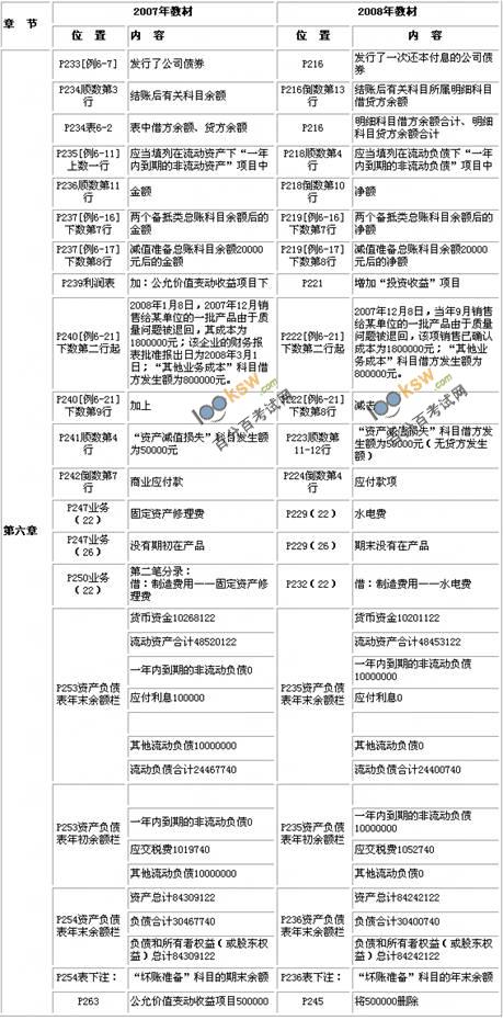 2007、08年《初级会计实务》教材变化对比(第六章)