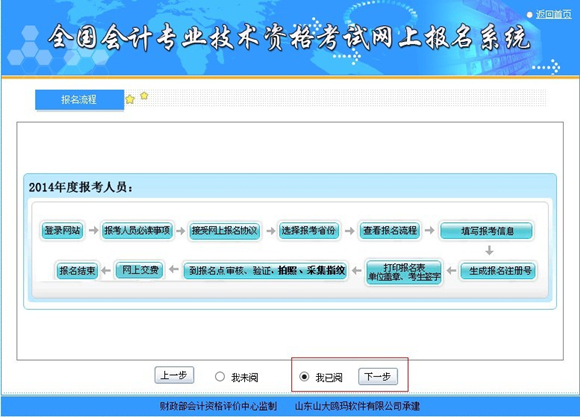 第四步:进入报名流程图,仔细查看后,点击下一步。之后点击“确定”。