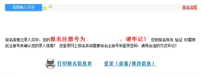 第八步:信息输入完毕后,自动生成报名注册号,要牢记。最后打印打印报名信息表即可。