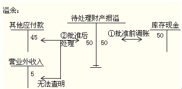 【答案解析】企业在进行现金清查中,发现多余的现金,批准处理前通过“待处理财产损溢”处理。属于无法查明原因的现金溢余,经批准后记入营业外收入。