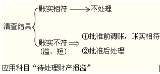 企业应当按规定进行现金的清查,一般采用实地盘点法,对于清查的结果应当编制现金盘点报告单。有溢余或短缺的应先通过“待处理财产损溢”科目,经批准后再作出最后的处理。