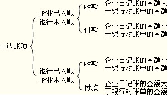 ①企业已收,银行未收。(企业银行存款日记账大于银行对账单余额)