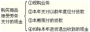 公式:购买商品、接受劳务支付的现金=当期购买商品、接受劳务支付的现金+当期支付前期的应付账款和应付票据+当期预付的款项-当期因购货退回收到的现金