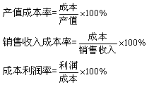 相关指标比率分析法是计算两个性质不同而又相关的指标的比率进行数量分析的方法。产值成本率、销售收入成本率和成本利润率的计算公式如下: