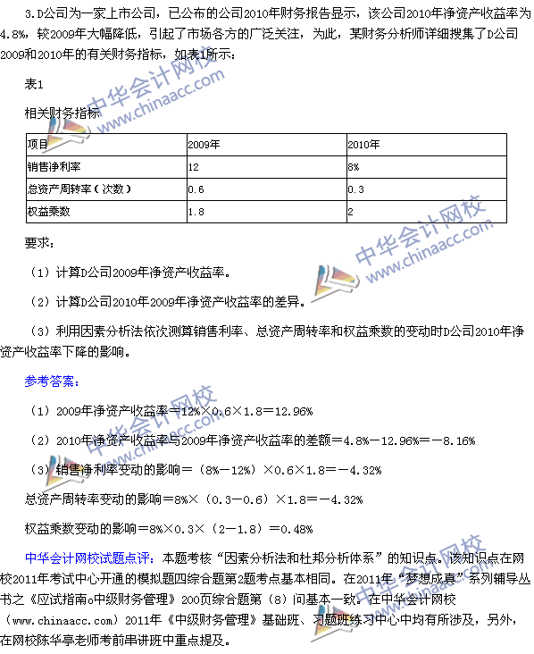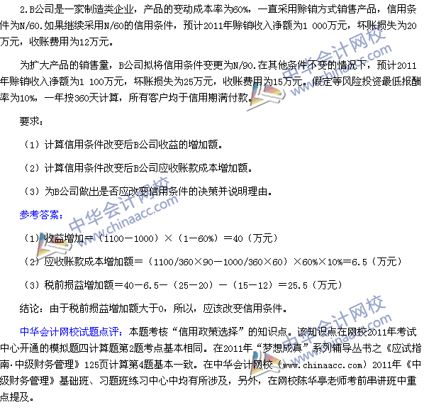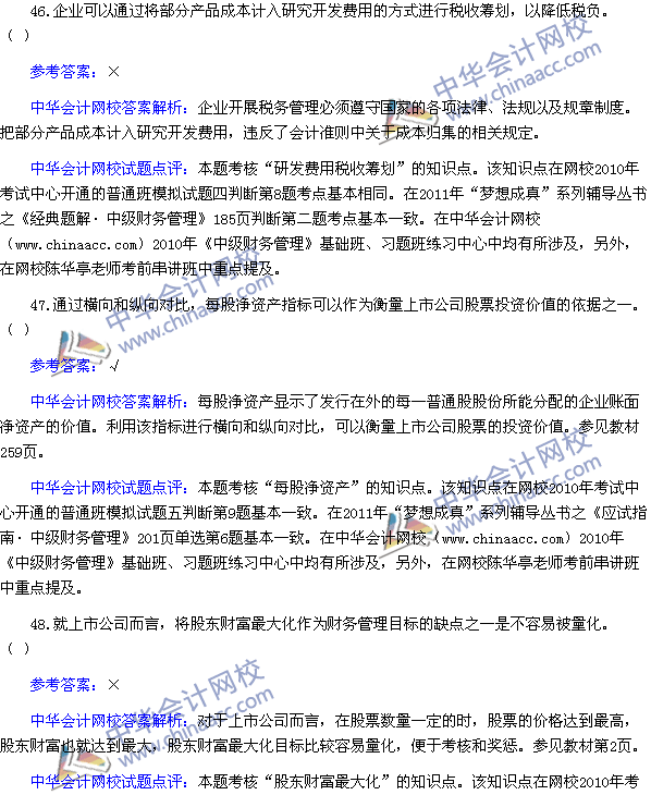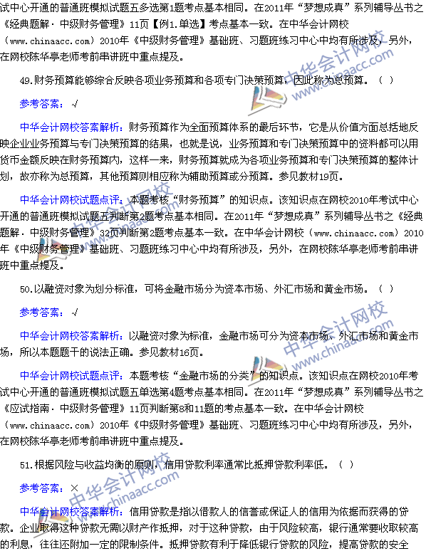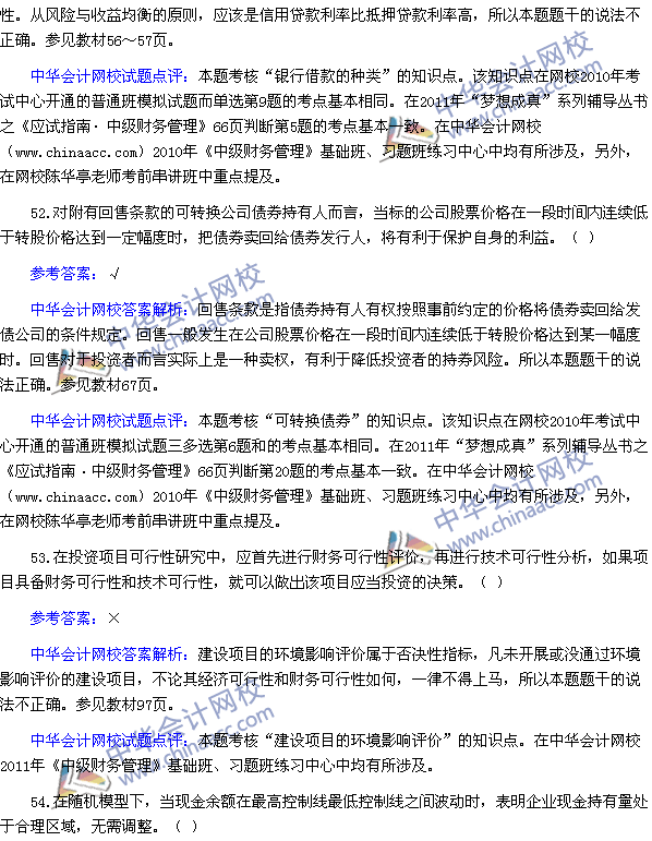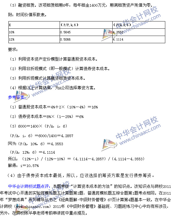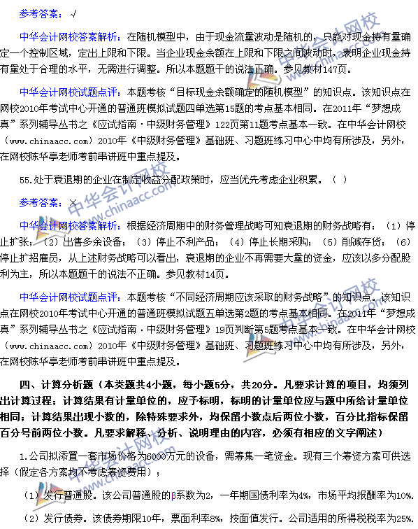 2011年中级会计职称考试《财务管理》考试题目及参考答案