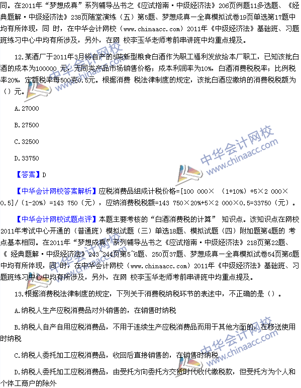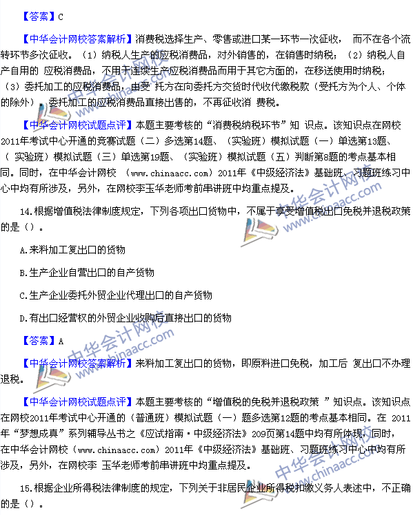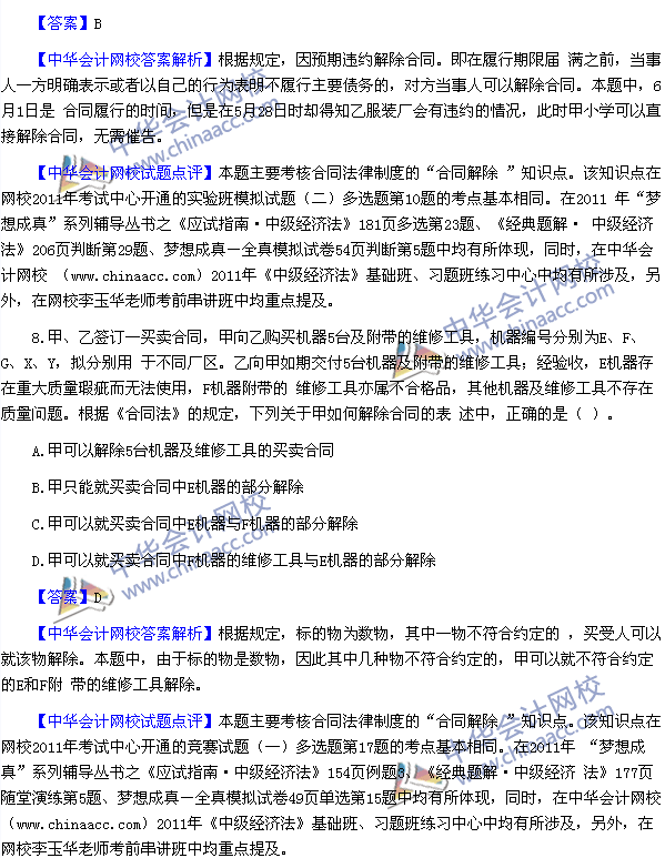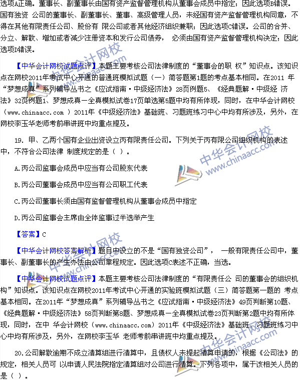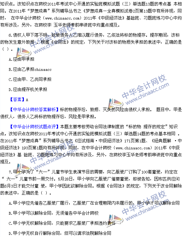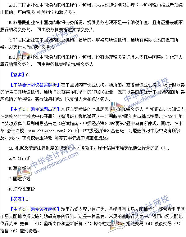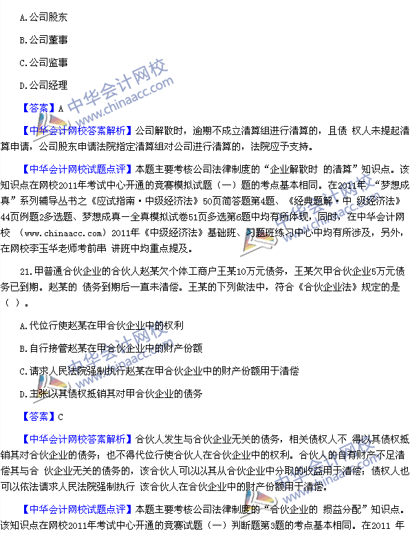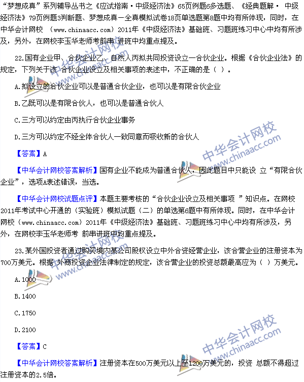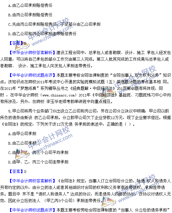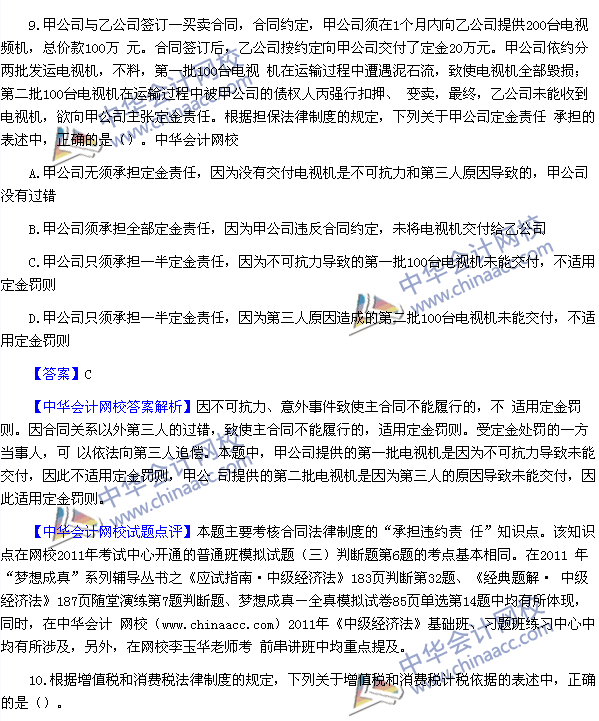 2011年中级会计职称考试《经济法》考试题目及参考答案