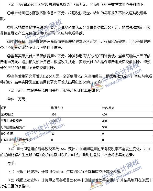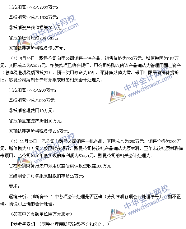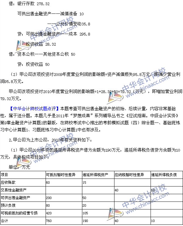 2011年中级会计职称考试《中级会计实务》考试题目及参考答案