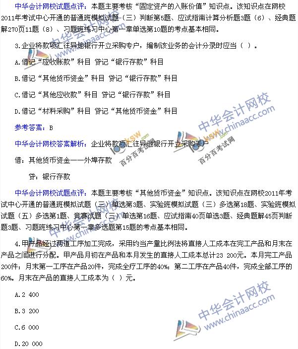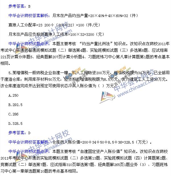 2011年初级会计职称考试《初级会计实务》考试题目及参考答案