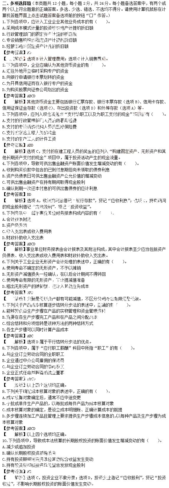 2016初级会计实务不定项选择题考试真题(5.15网友版)