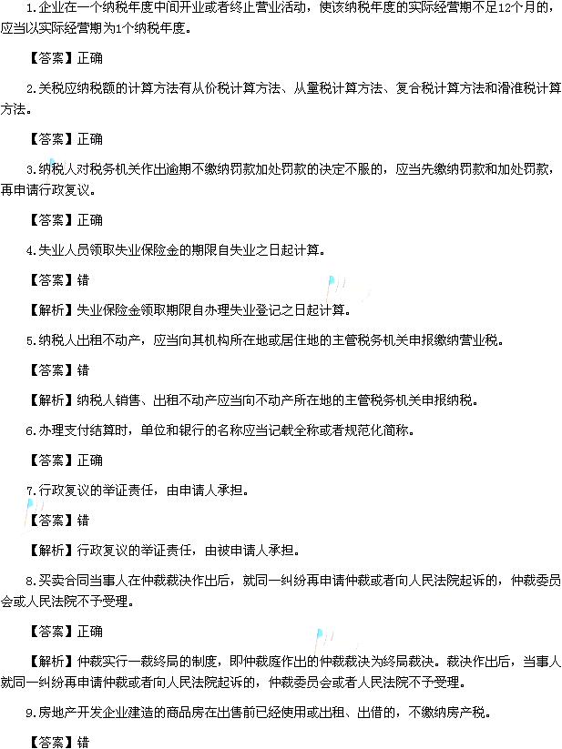 2016初级会计职称经济法基础判断题真题(5.14网友版)